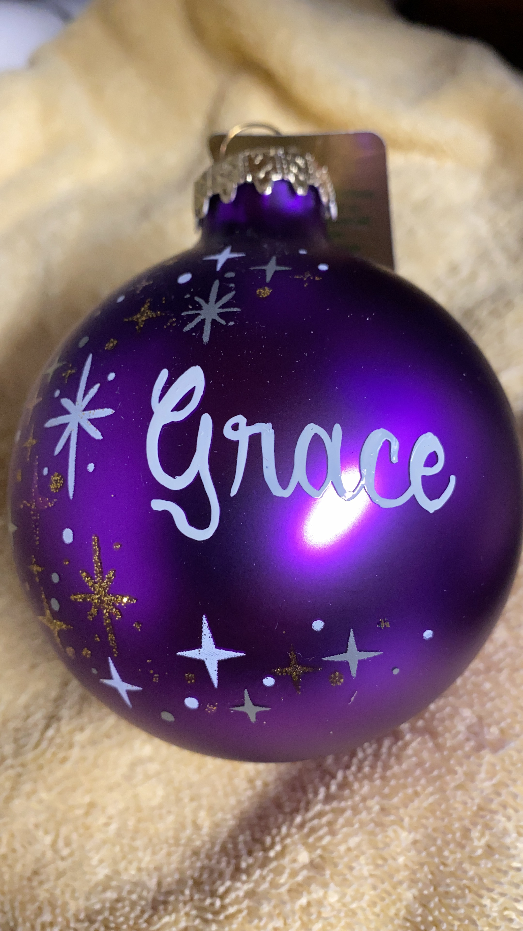 After the ornament was finished, Donna smiled and handed me the beautiful ornament with the name “Grace”. She said to me, “Although Grace is not here with us, she is still part of you, and that makes her part of me. She is with us in spirit.” (Yes, our eyes were leaking!)